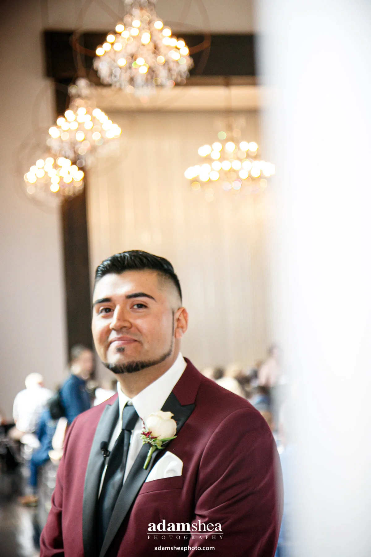 Taylor and Favian’s wedding ceremony was held at Sepia Chapel in Two Rivers, WI. The chapel is immaculate. It’s a newly-renovated former church with tall ceilings, beautiful columns and an eclectic metal and crystal decor. Truly a photographer’s dream to photograph. Especially with all of the natural light.
